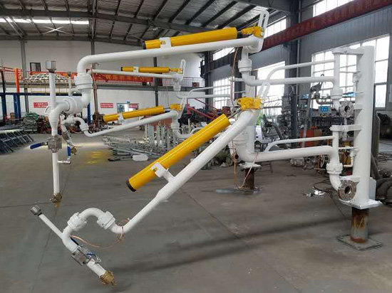 鶴管的安裝方法:發(fā)油臺(tái)與鶴管連接處配有相應(yīng)的標(biāo)準(zhǔn)法蘭,并保證基礎(chǔ)法蘭牢固可靠,法蘭盤(pán)距地面高度為2.1~2.2米,鶴管倒裝時(shí)法蘭盤(pán)距地面高度為2.7~2.8米。安裝過(guò)程中,每個(gè)法蘭面必須輕清潔干凈,有密封槽的必須用黃油將O形圈裝好后再連接在每個(gè)銷(xiāo)軸轉(zhuǎn)動(dòng)部分及彈簧平衡器安裝使用前必須涂潤(rùn)滑機(jī)油。<了解詳情>