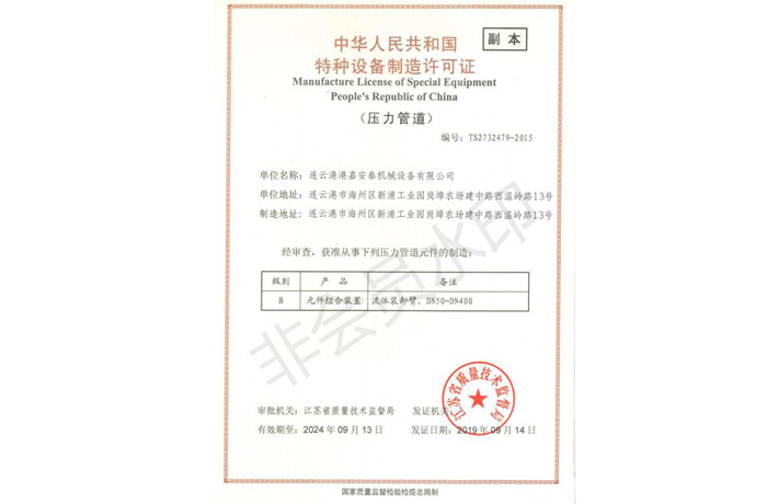 獲得了特種設(shè)備制造許可證(壓力管道)、防爆合格證等多項(xiàng)證書(shū)